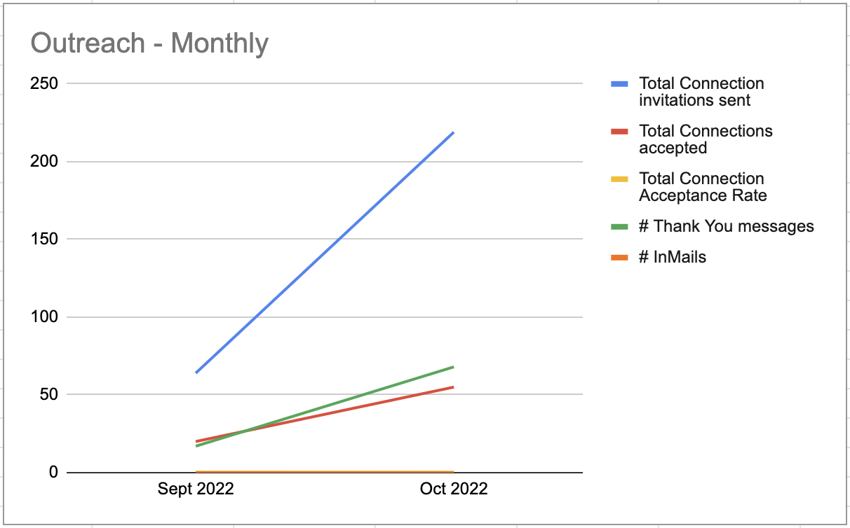 In other words, you send 100 connections over a month, and 60 of them are accepted. That gives you a 60% connection acceptance rate.
