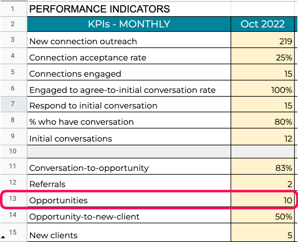 What it is: how many sales opportunities did you identify on LinkedIn from new connections or old connections that resurfaced during a given time period.