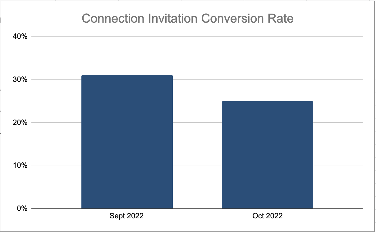 A good connection to conversion rate is around 40% - this means that 40% of the new connections are agreeing to a conversation or taking action on whatever your conversion event is.